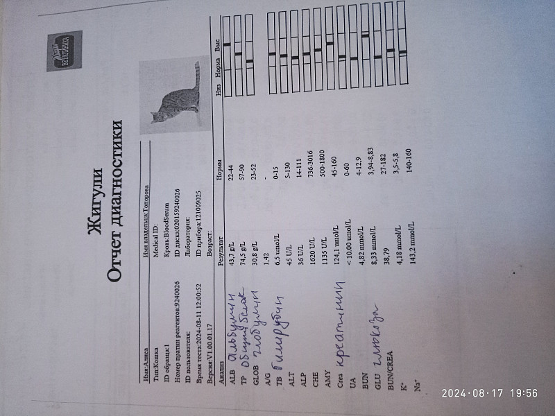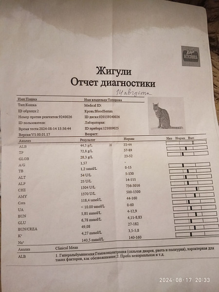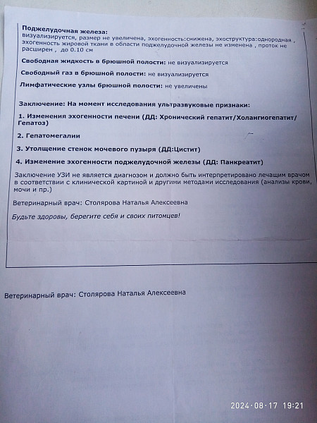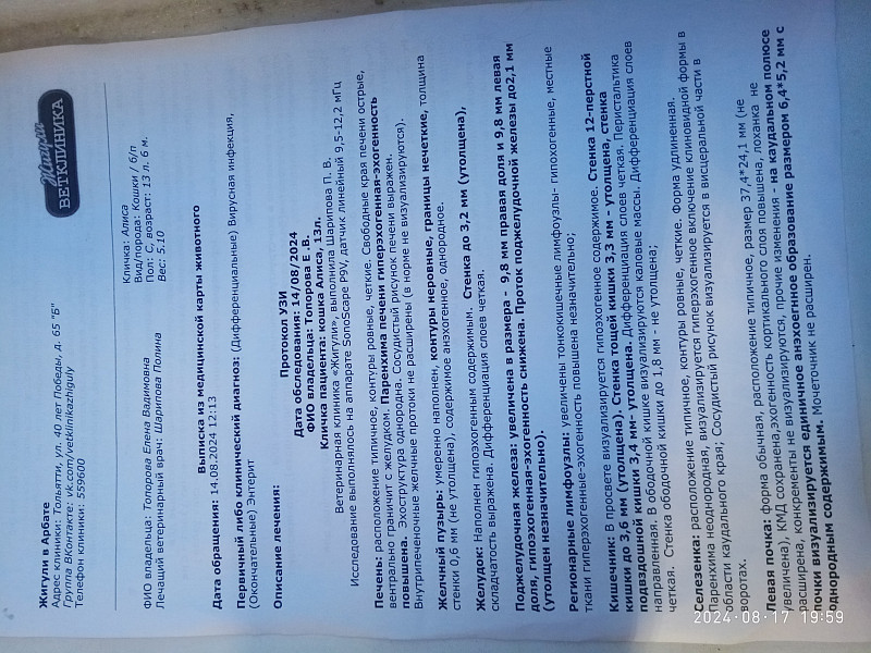 14/08/2024 коту Пашке становиться плохо. Симптомы все те же. Рвота, понос, отказ от еды.