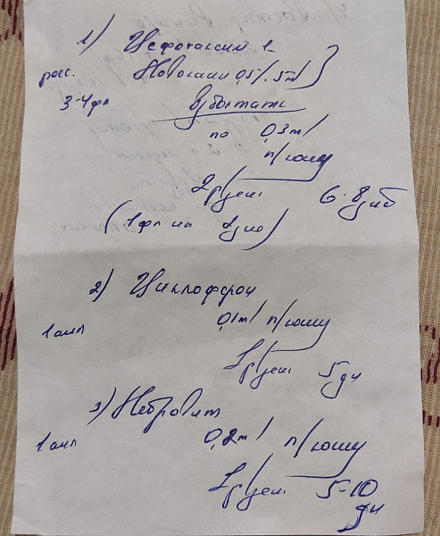 - 3 фото - дополнительные препараты, назначенные кошке;