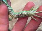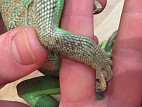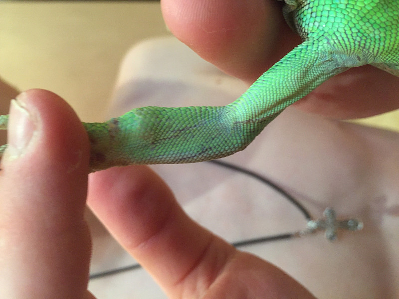 Добрый день. Игуана возраст около полутора лет. Купили две недели назад. Очень активная. Очень быстро бегает и любит прыгать. Выделений нет. Ходит в туалет нормально, обычно при вечернем плавание в ванной. Крен небольшой при зависании на воде есть. Ест хорошо но не все. Сейчас находится в процессе линьки. Отлиняла голова, теперь правая лапа. При прогулке на улице спрыгнула с моего плеча высотой 1,6 на тротуарную плитку 2 дня назад. Не прихрамывала, была активна. Вчера при купании заметили опухоль на правом запястье. Сегодня сделали рентген - перелом в запястье со смещением. При вправление косточки произошёл разрыв кожи небольшой, который прижгли йодом. Не бинтовали. Назначили добавку к пище reptical и сказали что все срастется, ничего делать не нужно. Приехали домой и увидели что косточка опять сместилась. К сожалению квалифицированных специалистов в нашем городе нет. Подскажите что нам дальше делать? Не отсохнет ли Лапка? И при покупке в магазине на хребте у неё темное пятно, нам сказали что она плохо отлиняла. Фото приложу. Заранее спасибо за помощь.