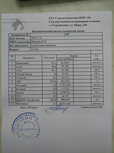Добрый день! В крови мочевины у черепахи не может быть, у черепах берется анализ крови на мочевую кислоту.