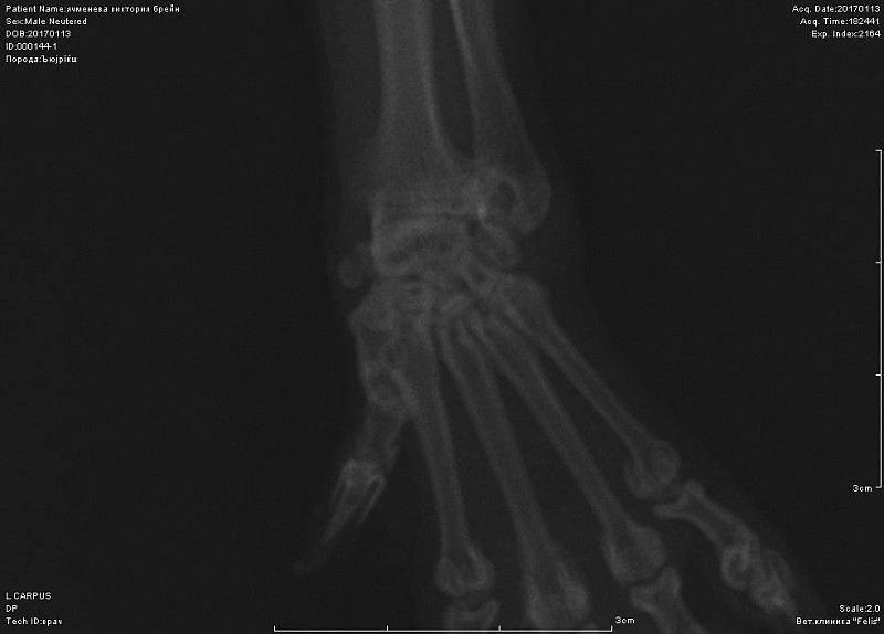 Спасибо, пойдем в клинику Сотникова. Еще раз спасибо, сняли с кота хоть лангетку с запястного сустава, чтобы не мучать.