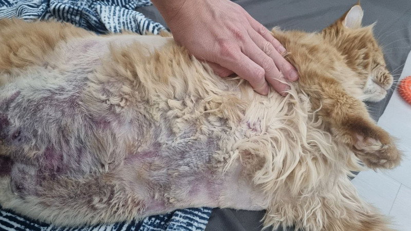 Здравствуйте, месяц назад у кота при стрижке я увидел внизу живота, там где жировая складка, красноту. Кот ведет себя также, как и всегда вел, ему не больно, кушает, пьет, ходит в туалет. Сдали анализ крови - все в норме, на узи сказали, что все в порядке со всеми органами, но в жировой прослойке что-то есть, а что - неясно. На ощупь что-то твердое. Принимали антибиотики 10 дней, после этого 2 недели таблетки от гематом. Отечность спала, но цвет живота стал темнее и распространился в стороны. Что делать я не знаю, врачи предлагают разрезать и удалять это образование, но они сами не уверены, стоит ли это делать, так как это может быть гематома или что-то еще, что можно не удалять. Кот был у 3 врачей, один из которых хирург, а второй занимается узи и все комментировали, что это неясно что. Вдруг тут на форуме кто-то сталкивался и может мне помочь. 1 фото - месяц назад, второе - сегодня