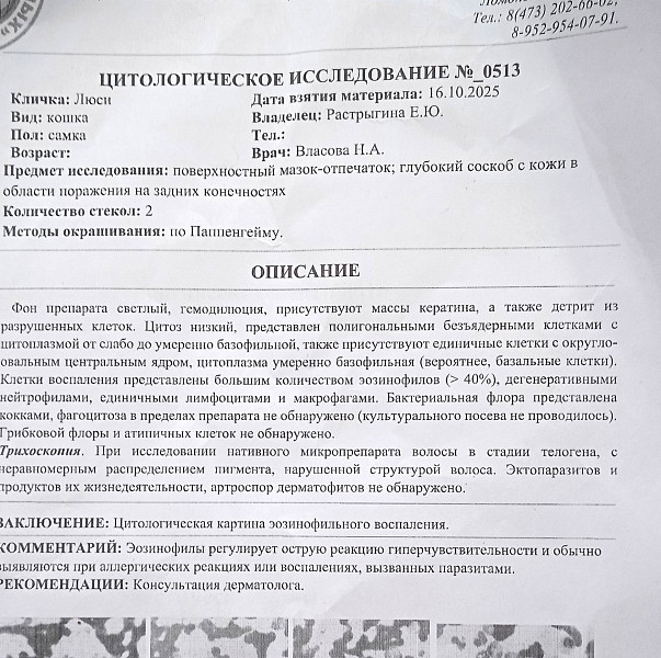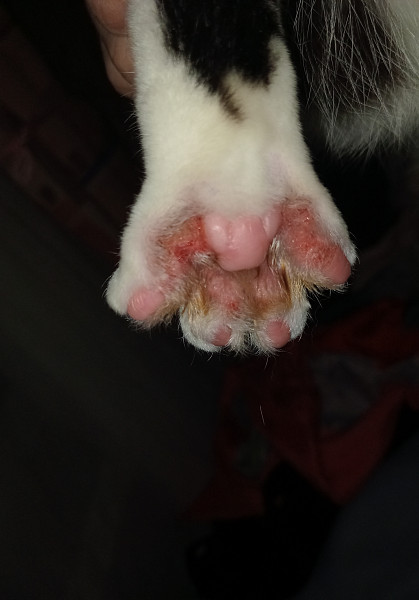 Кормила недолго 1-1.5 недели Farmina kinoa urinary (не лечебный с пониженным содержанием минералов и белка) для профилактики. Давала вкусняшки жидкие и подушки. Заметила вялое состояние и обнаружила на подушечках задних лап сильное раздражение, как будто мокрые пористые и на губе (небольшая бляшка) типо дерматита.
