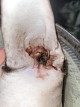7. Есть ли зуд (разлизывания, расчесывания)? - зуд и расчесывание как только снимается защитный конус. В период обострения внутри уха образуется много налета серого цвета который закупоривает слуховой проход, ничем не пахнет, извлекается легко ватной палочкой (очищает ветеринар), затем выписывается лосьон (новый на пробу) и проводится промывание, тогда этот налет похож на хлопья и куски непонятно чего, как будто вязкие кусочки кожи (когда такое происходит, значит на следующий день ухо будет полностью мокрое как на последних 2-х фото).