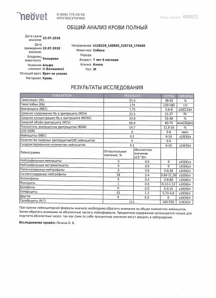 Анализы, в т.ч. крови, прилагаю.