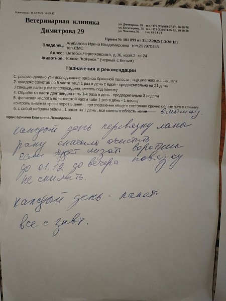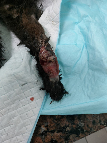здравствуйте, пожалуйста проконсультируйте . Кота подобрали в подвале, в плохом состоянии, истощенный, возрастной, но ест. Клиника уже закрывалась. Успели взять общий анализ крови и показания почечные. Осмотр - плохие зубы, многие подгнившие. Глубокая рана на лапе с переломом. Рентген не успевали сделать. Когда врач взял за холку то между лопаток вырвался кусочек кожи. Фото прилагаю. Рекомендовали усыпить. Но мы решили показать его в другую клинику, 1 января все клиники у нас закрыты. Врачи которые могут что-то обследовать будет только с понедельника. На сколько предположения о СХК могут быть верными. Как правильно обследовать и есть ли методы лечения. Что делать с этой раной. Как правильно ее заживлять?