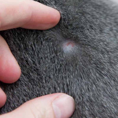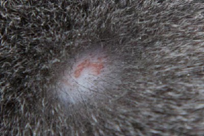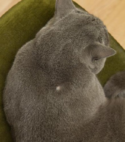 Подскажите, пожалуйста. Обнаружила у кот (русский голубой) проплешину в районе холки, чуть сбоку. Диаметр меньше 1 см. Фото прилагаю.
