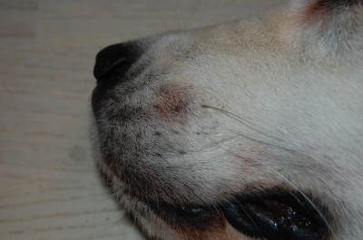 Добрый вечер.Наша ситуация:3 недели назад,после игры с собаками (у меня их з),у 10-месячной голденши на утро появилось 3 розовых пятна на морде.Одно,там где усы.Там,где пятно,ус сломан,а 2 других по краю брыли.Я обработала спиртом и все.Через неделю они стали более розовыми и я обратилась к вету.Были сомнения-может аллергия,может грибок.Вет сказал,что грибок(не взяв анализов),после травмы.Назначил кларитин,глюконат кальция,3-х%р-р левомицитина (смазывать).Прошло 3 недели.Пятна чуть посветлели,но...зарозовела одна лапа(между пальцами),покоричневела шерсть в уголках глаз и место,где ус сломан несколько припухшее,не сильно,но чувствуется пальцем.Не мокнет.Ус новый не вырос.Что делать?Помогите,пожалуйста.