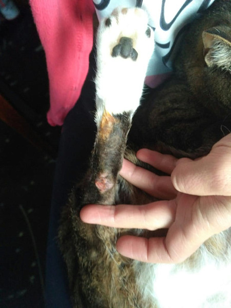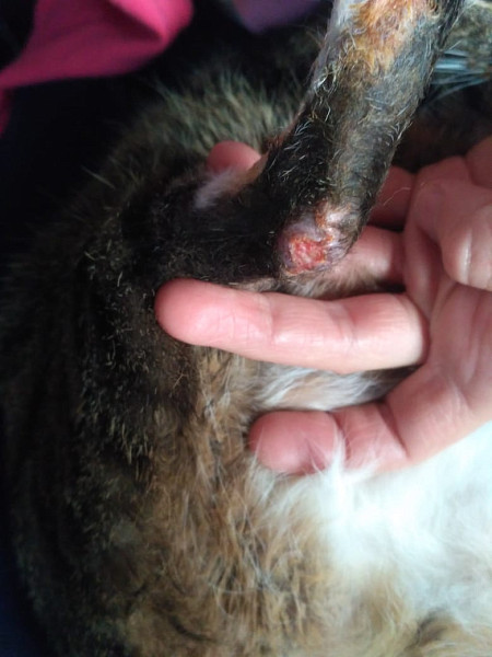 Пересадка лоскута на пятку кошке