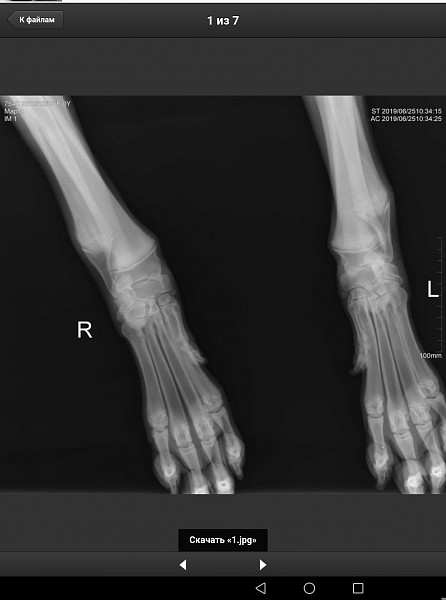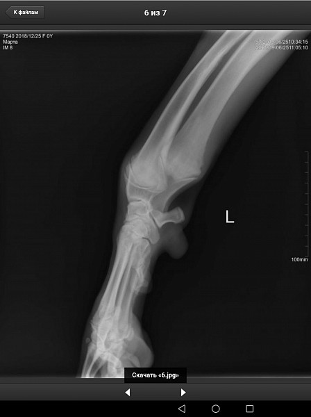 Есть рентгеновский снимок. Прошу вас прокомментировать его, правильный ли диагноз? Как срочно нужно оперировать, если подтвердится диагноз? Какой период реабилитации? И, что нас ожидает в будущем, от чего могла развиться болезнь, наследственное это или нет, что делать, чтобы предупредить заболевание суставов других лап?