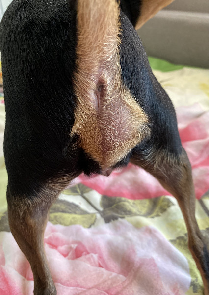 Собаку это место не беспокоит, даже при пальпации собачка никак не реагирует.
