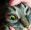 Травма головы у кота и кровоизлияние в глаза