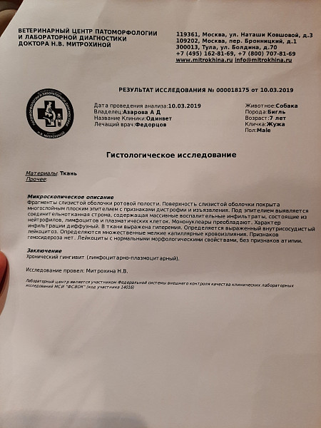 Во вложении фото пасти на сегодняшний день, результаты гистологии и последние анализы крови.