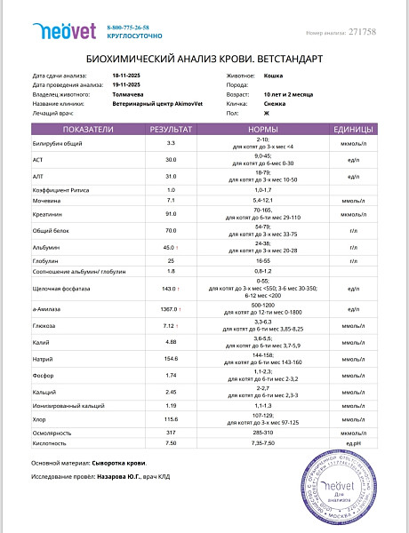 После удаления кошка начала немного есть самостоятельно, однако на третьей неделе после удаления самостоятельно есть перестала, кормили через шприц.