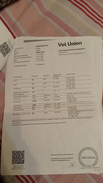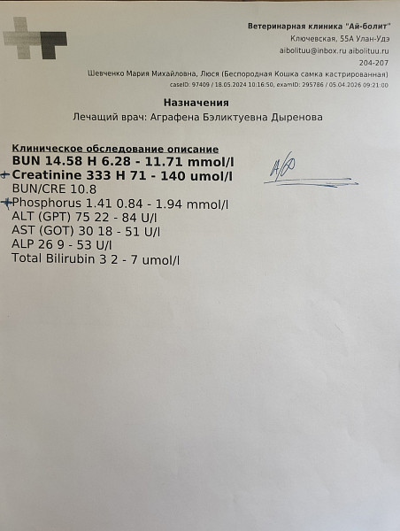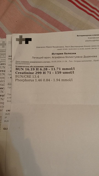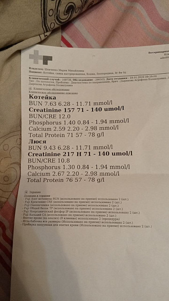 Не помню уже, когда она заболела. По результатам крови видно креатинин повышенный, примерно тогда и началось.