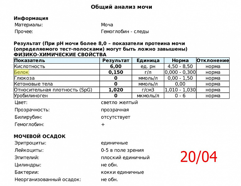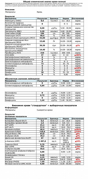 Анализы крови до (27 апреля) и после (3 мая).