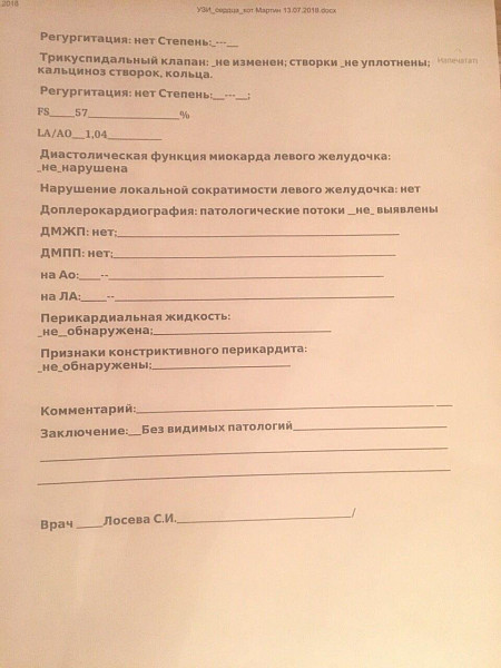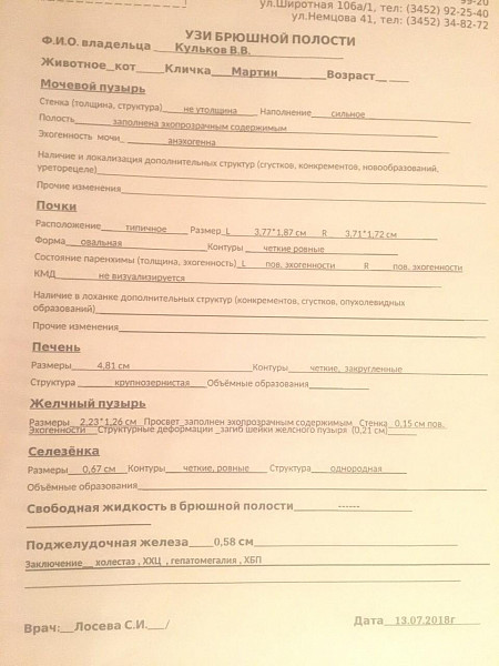 Здравствуйте. Запланировали коту чистку зубов, так как из-за их состояния кот перестал кушать сушку. Предварительно сдали 11.07.18 биохимию и ОАК, УЗИ сердца и брюшной полости (так как ХПН уже несколько лет). По результатам были отклонения лишь по гемоглобину. Пролечились 2 недели мальтофером.