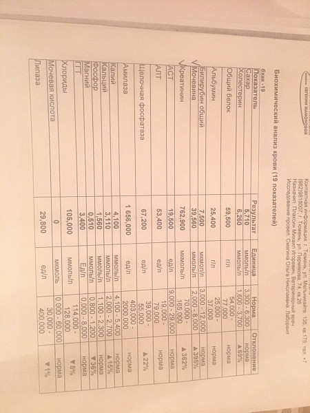 04.08. снова сдали кровь, креатинин стал 645мкмоль. Со следующего дня, в течении 5 дней, начали ставить капельницы с раствором рингера по 25мг на час. В последний день капельниц сдали повторно анализ, креатинин понизился только до 639мкмоль.