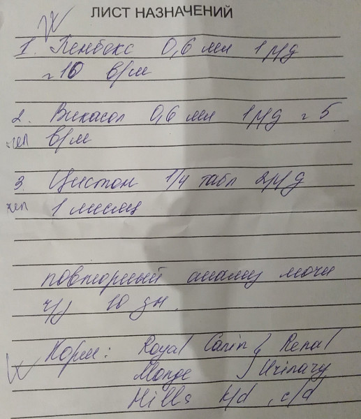 14.10.18 На следующий день мы поехали в другую клинику( в которой изначально осматривались когда отказали лапы) и сдали анализы,моча, кровь.