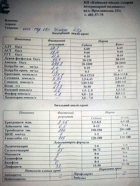 Здравствуйте. Анализы крови, действительно, без особых отклонений, однако, ОКА крови следует пересдать (проследить количество лейкоцитов). Биохимию крови также желательно позже еще раз проконтролировать (т.к. последствия переболевания могут сказаться в более длительном периоде). По правилам, после инъекции лекарственной краски (от пироплазмоза) мазок на бабезиоз следует пересдавать, чтобы убедиться, что паразиты все убиты.