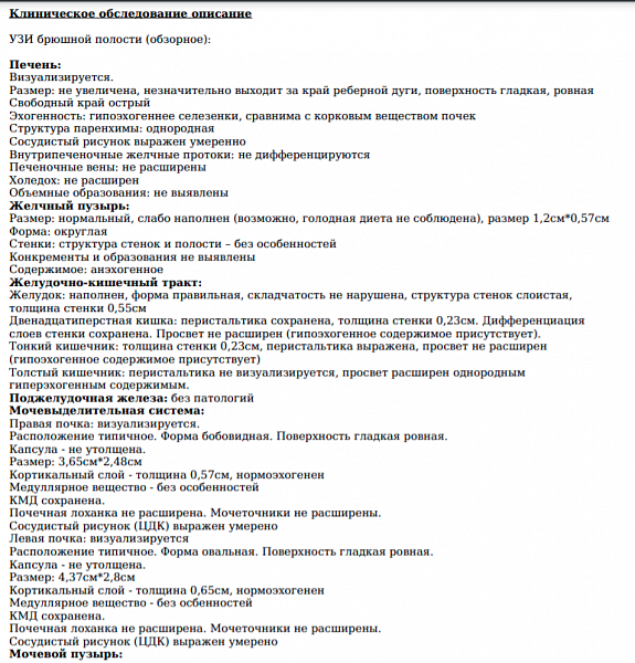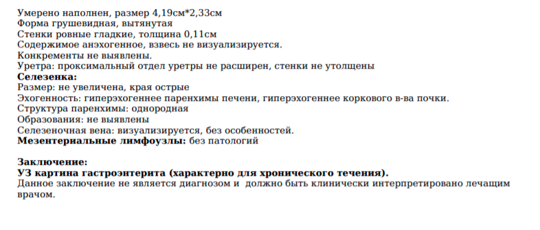 Провели УЗИ ЖКТ. Как положено, не кормили часов 7 до исследования, но в желудке все равно осталась непереваренная пища.
